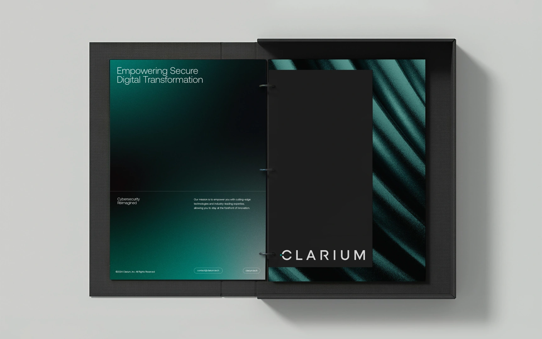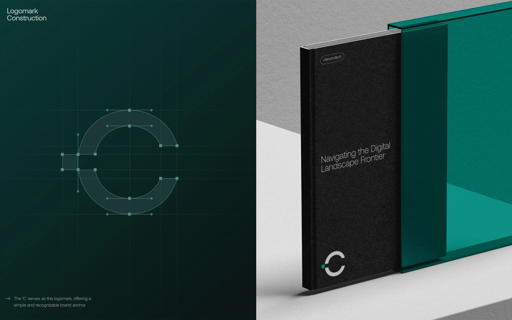 Perkk shaped the brand around that idea of distinction through clarity. The identity centers on a custom “C” mark, interrupted by a single square element that signals differentiation and intent. This subtle break becomes a recurring motif across the system, reinforcing Clarium’s role as the missing piece that brings structure to complexity. The visual language is quiet, deliberate, and composed to reflect trust, stability, and long-term relevance.