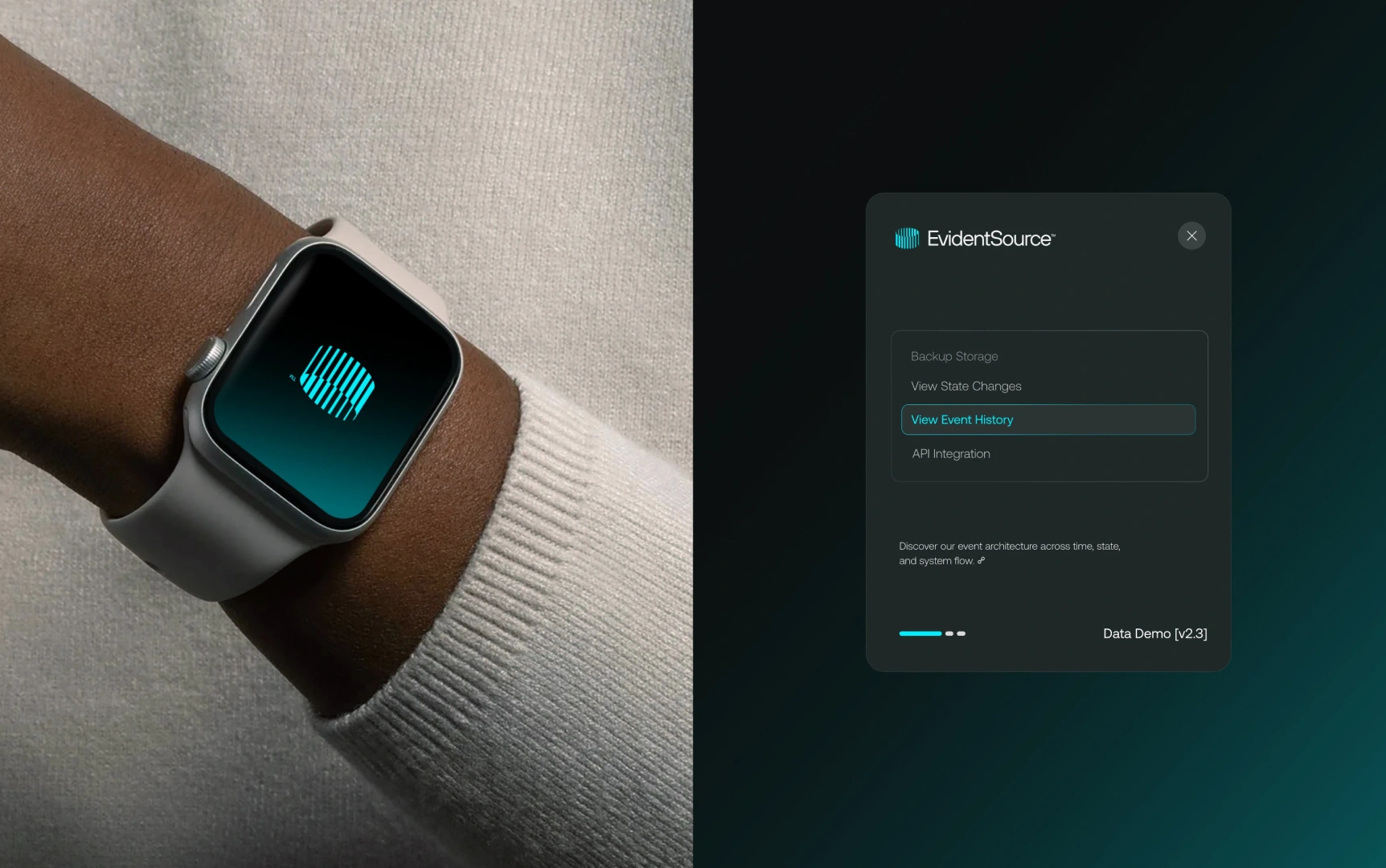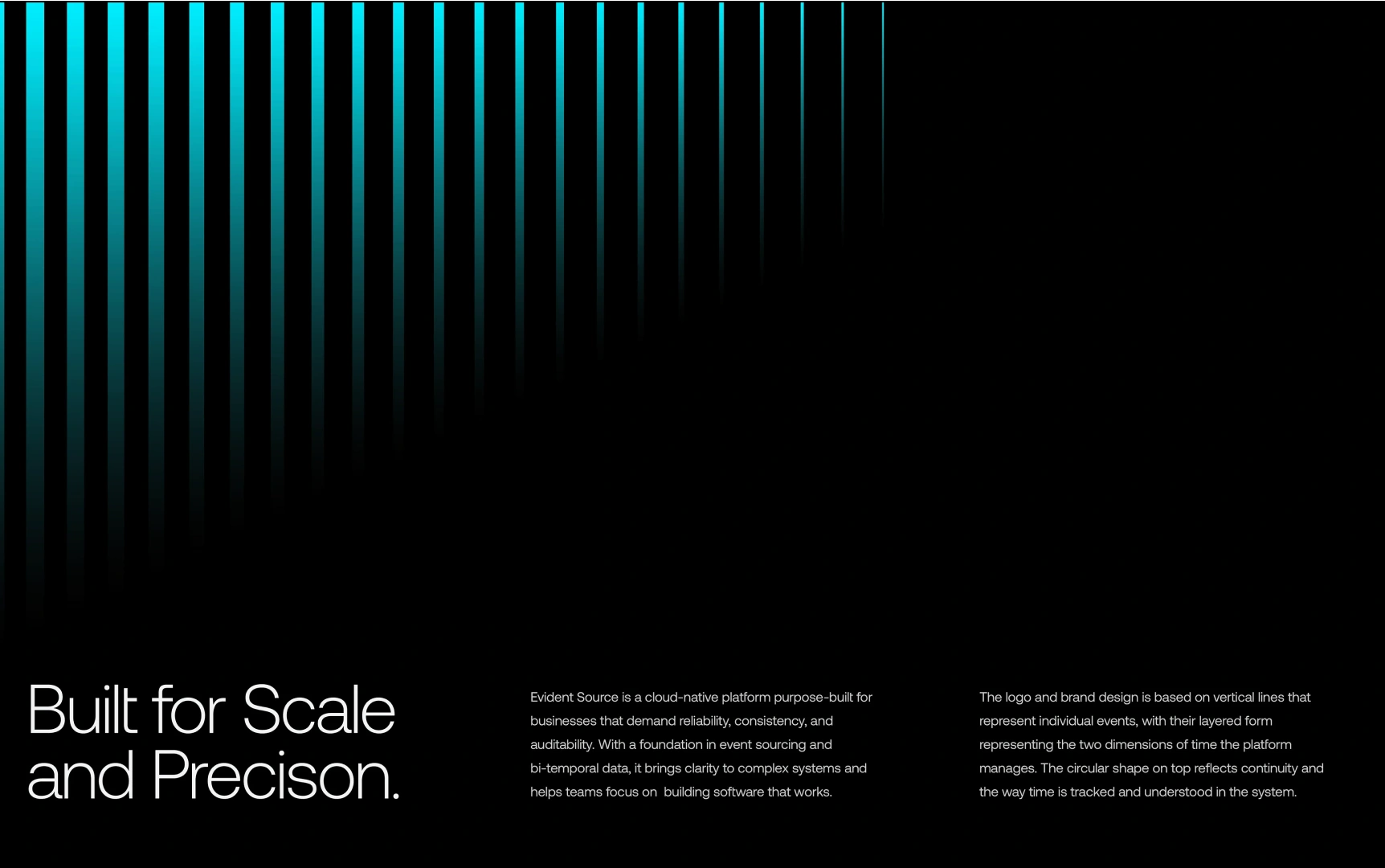 Perkk translated this technical foundation into a brand identity centered on clarity and structure. The visual system draws from timelines, layered events, and motion through time, expressing how the platform organizes complexity into something understandable and dependable. A modern logotype and disciplined visual language reinforce Evident Source as enterprise infrastructure built for long-term trust.